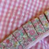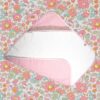 L’accappatoio è realizzato in morbida spugna bianca, dalla texture vellutata, certificata OEKO-TEX 100, italiana al 100%, doppiato in morbido tessuto rigato di cotone italiano, i dettagli in tessuto a contrasto sono Liberty London.