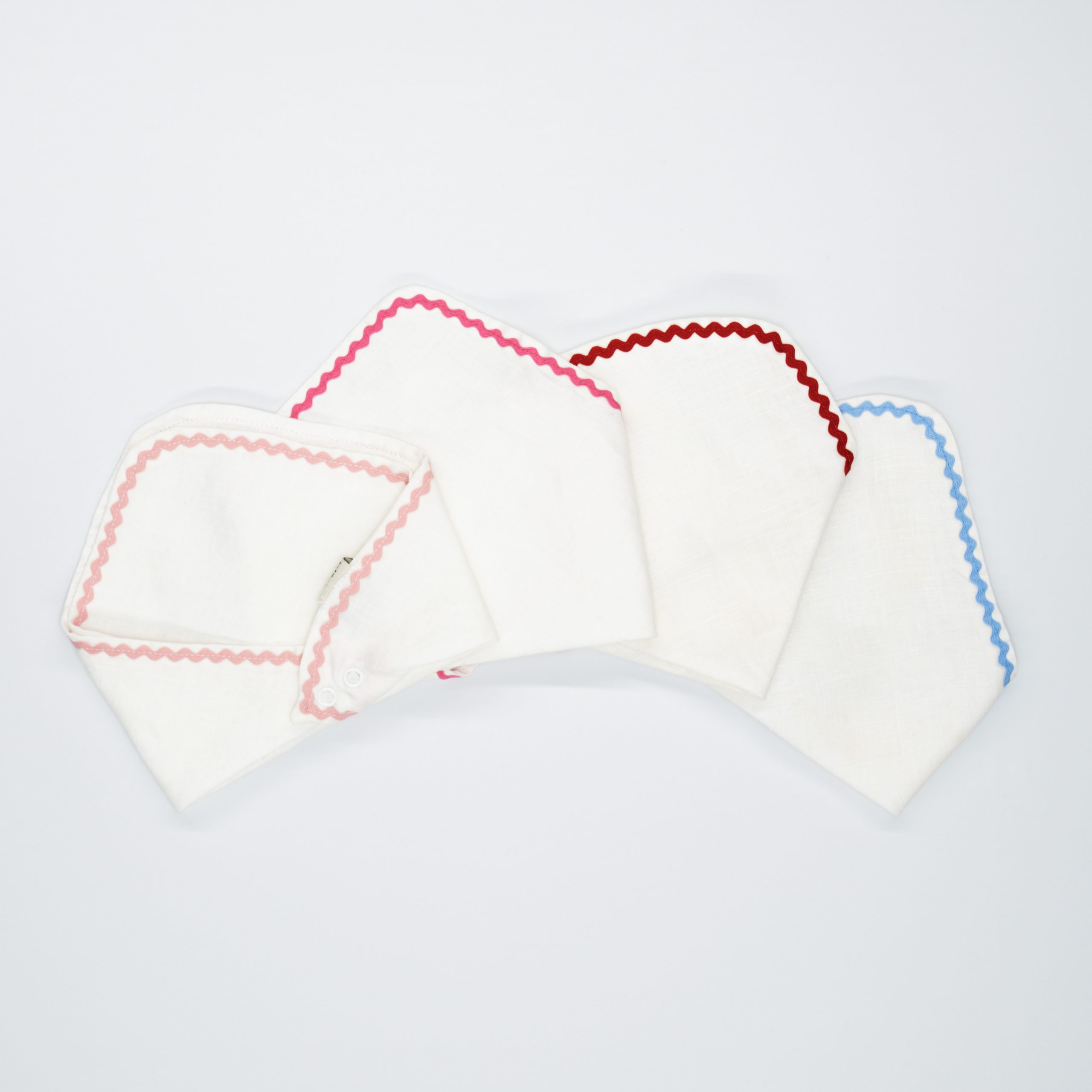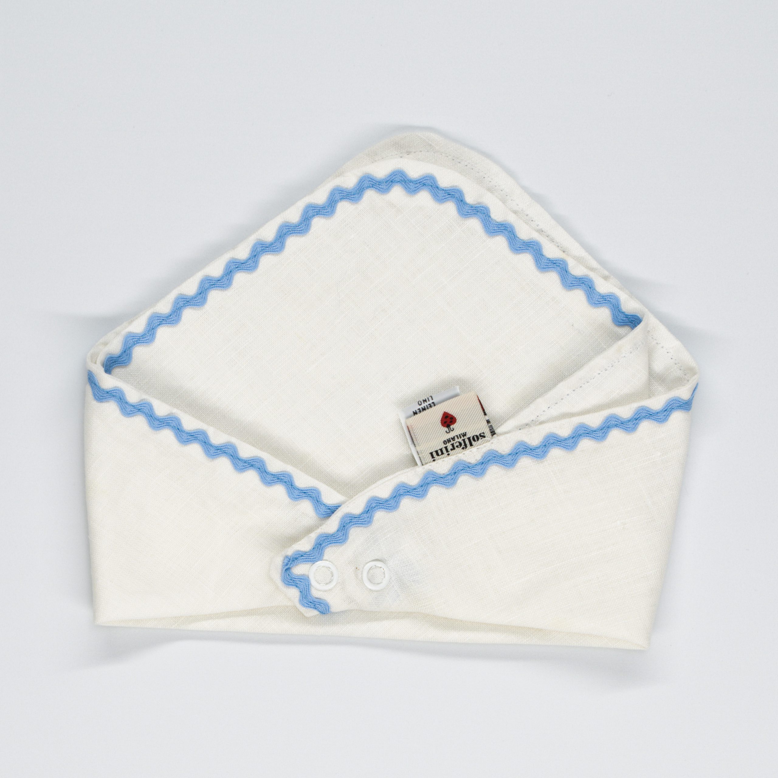 Il morbido Bavaglino bandana per neonato in puro lino 100% italiano decorato dalla nostra iconica ondina è un’alternativa al più classico bavaglino.