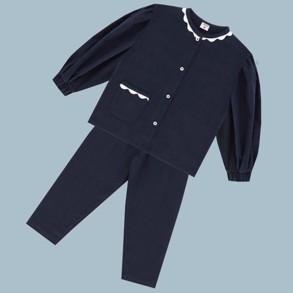 - Colletto con pettorina, maniche lunghe, chiusura frontale con bottoni, taschina applicata.