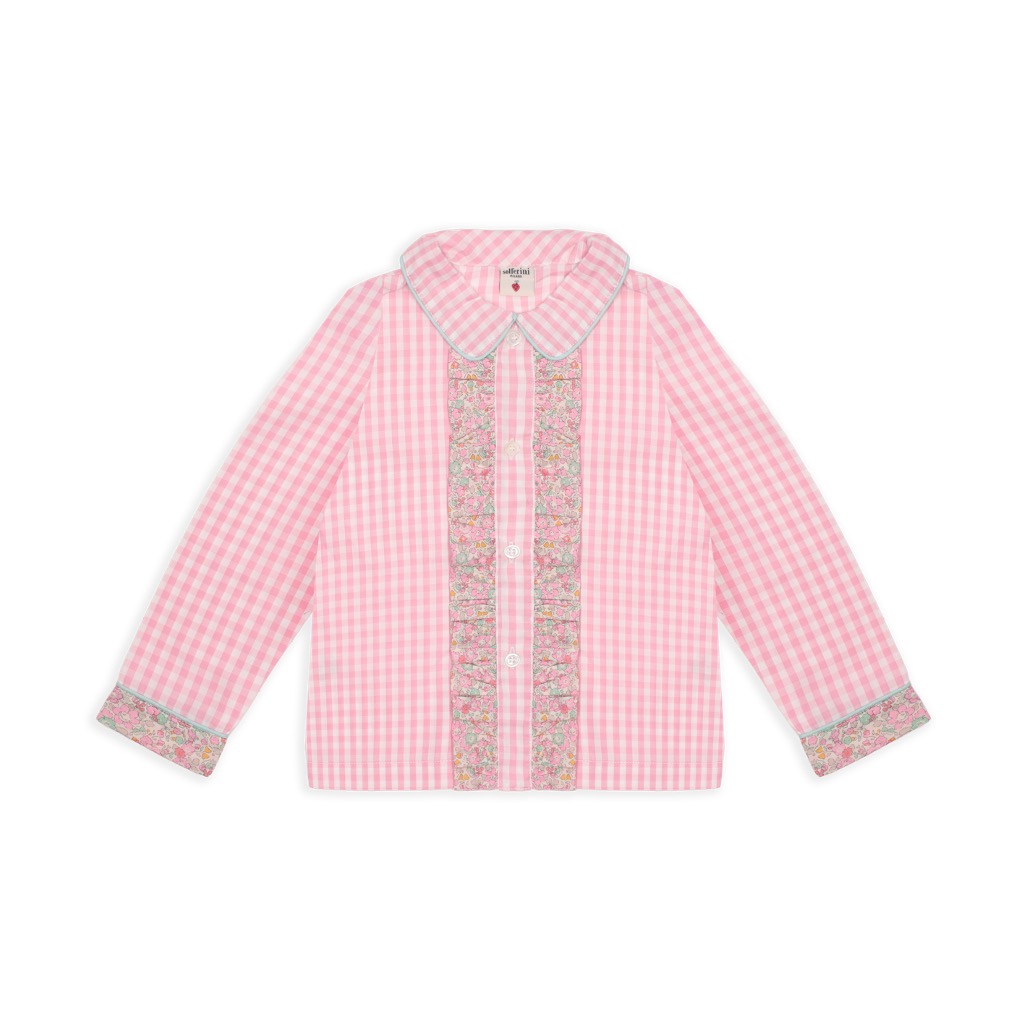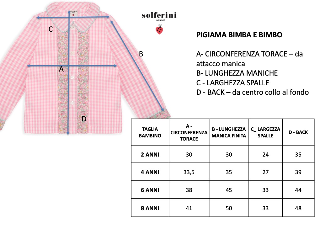 - Colletto con pettorina, maniche lunghe, chiusura frontale con bottoni.