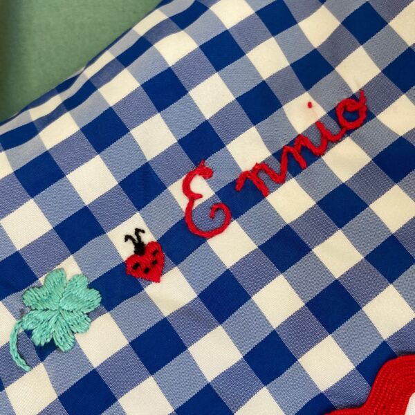 Oltre alla loro funzionalità, le nostre cartelle per l’asilo offrono la possibilità di personalizzazione con il ricamo a macchina del nome o delle iniziali. Ci sembra un regalo sofisticato ed utile, per accompagnare i più piccini nella loro prima avventura lontani da casa!