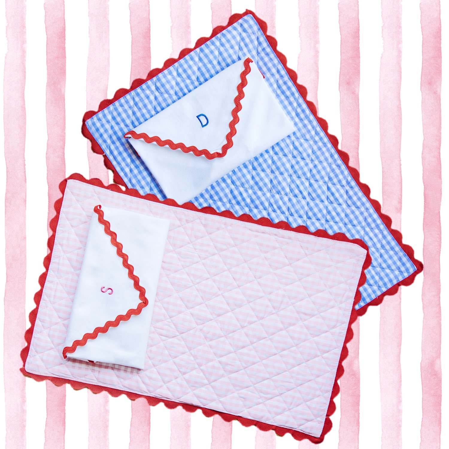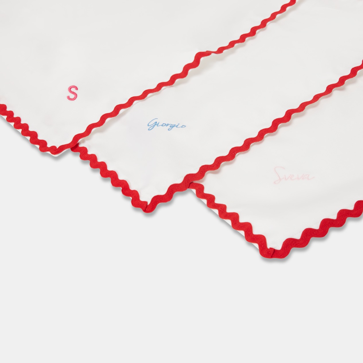 In puro cotone italiano, i nostri iconici tovaglioli “Ondina” sono personalizzabili con nome o iniziali, sono perfetti per creare il set asilo perfetto.